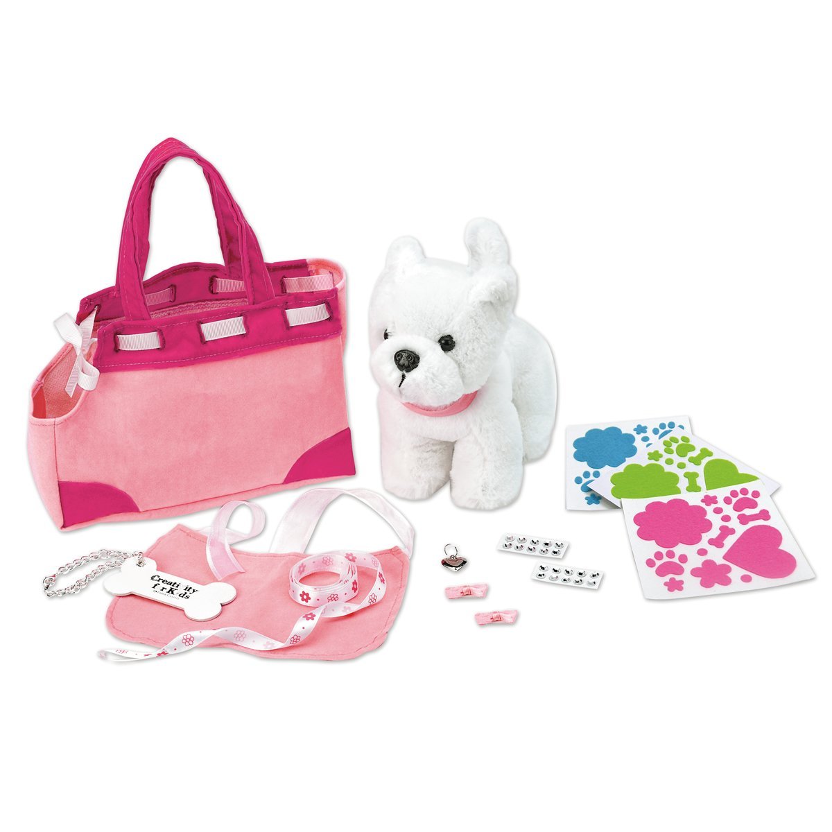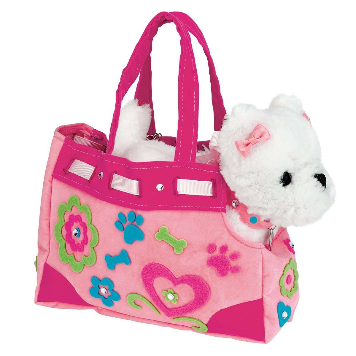 Decorate and accessorize your diva doggie’s posh purse. velvet collar. satin leash. velvet cape. satin bows and dog bone name tag. Quick and easy peel-and-press felt accents and rhinestones means no glue or scissors are needed.