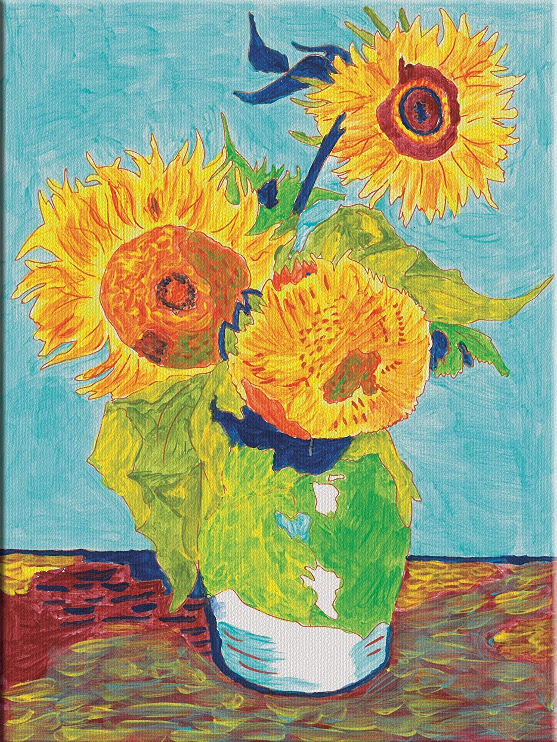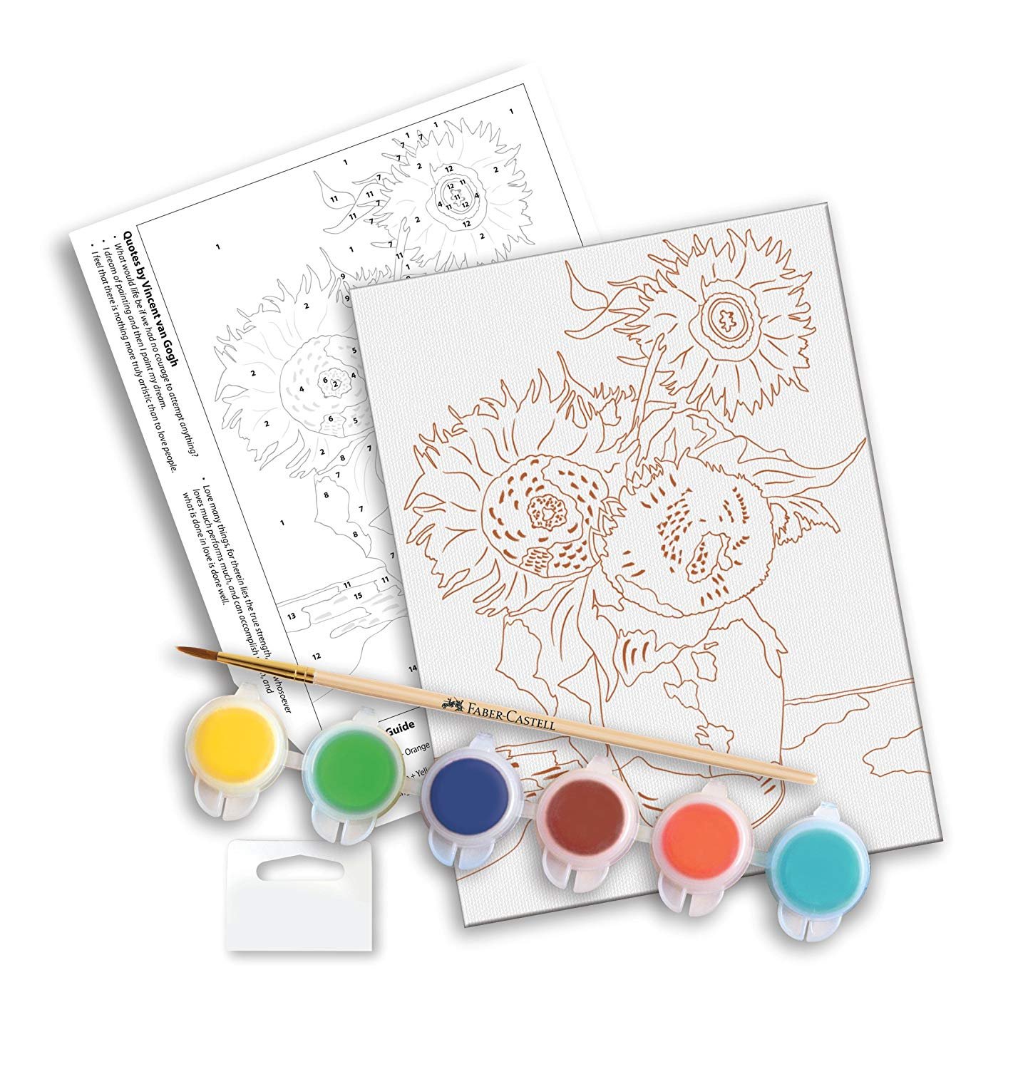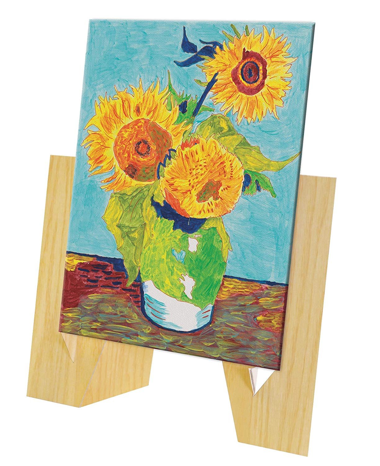 Learn to paint like the Masters! Recreate Sunflowers by Vincent van Gogh on real artist canvas. Illustrated instructions and and online tutorial teach young artists techniques used by the masters when creating their works of art. Showcase your artwork on the display easel when complete.